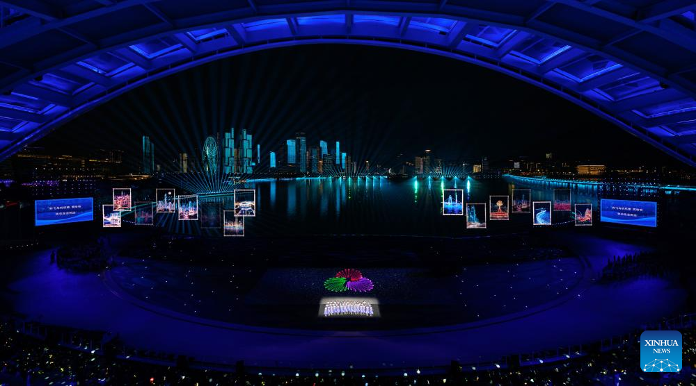 Photo taken on Nov. 21, 2025 shows the general view of the closing ceremony of China's 15th National Games in Shenzhen, south China's Guangdong Province. (Xinhua/Chen Yichen)