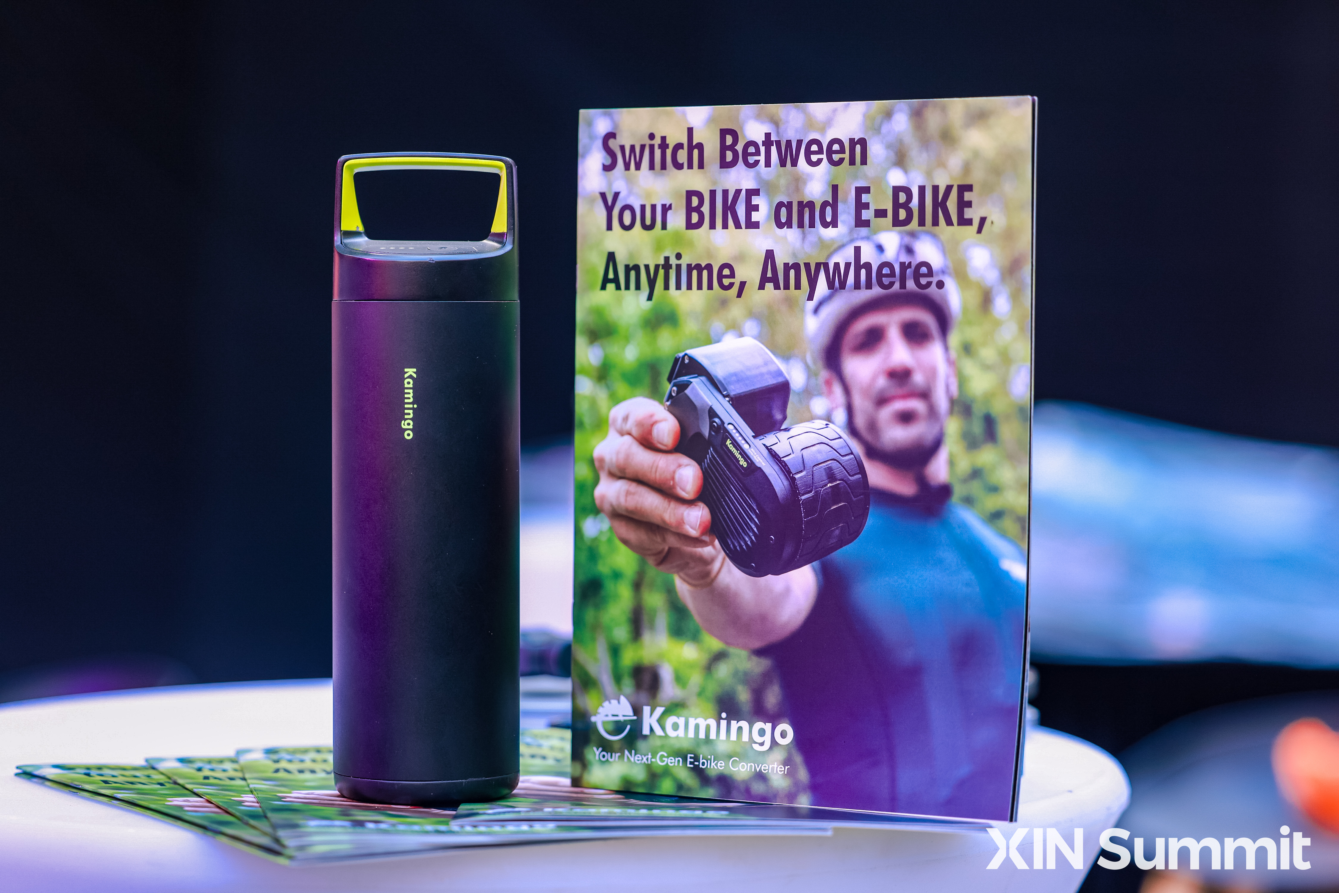 Kamingo's e-bike converter on display at the XIN Summit in Nanshan district, Shenzhen, Nov. 14, 2025. [Photo courtesy of XIN Summit]