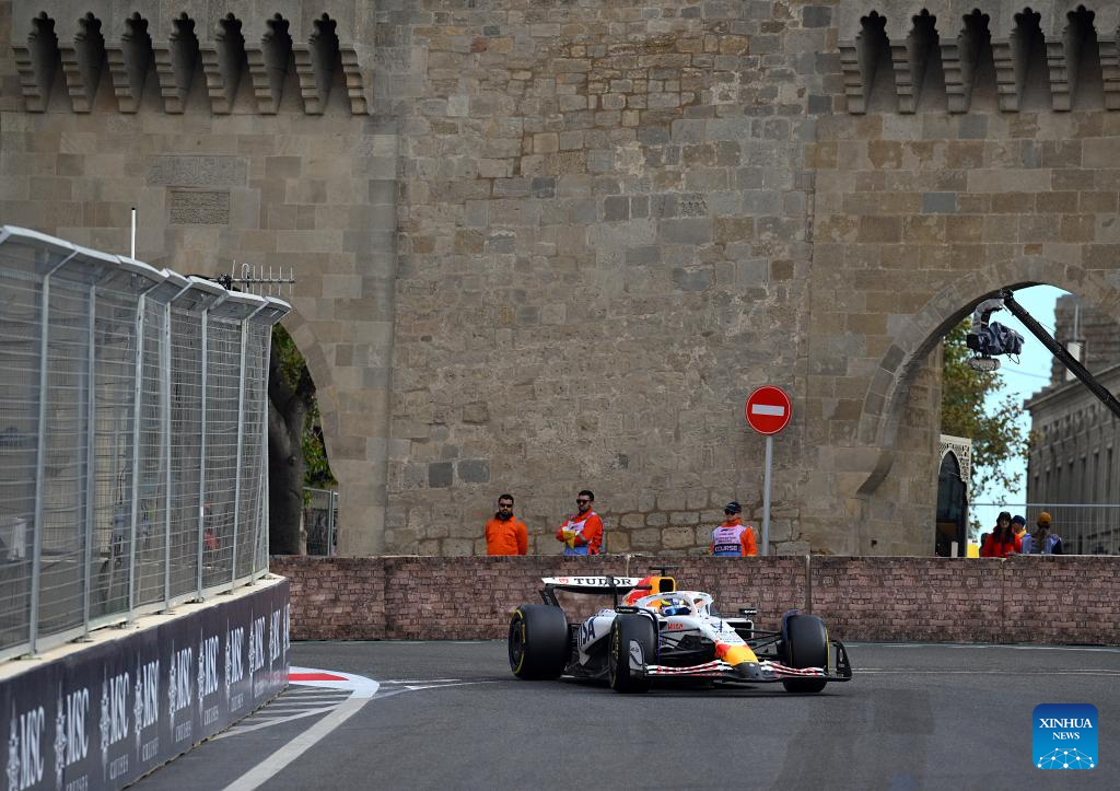 Racing Bulls' driver Isack Hadjar of France competes during the qualifying session of the 2025 Formula One Azerbaijan Grand Prix in Baku, Azerbaijan, Sept. 20, 2025. (Photo by Tofik Babayev/Xinhua)