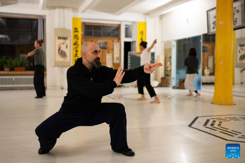 Ismet Himmet demonstrates Chinese martial arts at XUAN-Gong Fu Academy in Berlin, Germany, Nov. 13, 2025. [Photo/Xinhua]