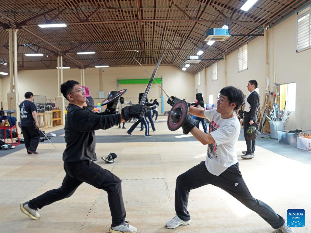 Members of the Shanghai Historical Martial Arts (SHMA) club practice with each other at the SHMA in Shanghai, east China, Nov. 22, 2025. [Photo/Xinhua]