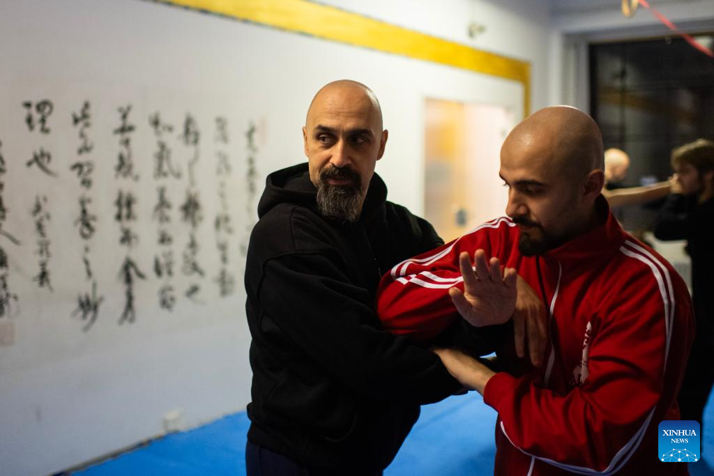 Ismet Himmet (L) instructs a student at XUAN-Gong Fu Academy in Berlin, Germany, Nov. 13, 2025. [Photo/Xinhua]
