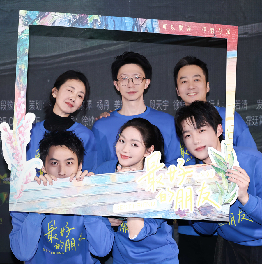 Cast and crew pose for a photo on stage at the premiere of "Best Friend" in Beijing, Dec. 3, 2025. [Photo courtesy of China Film Group]