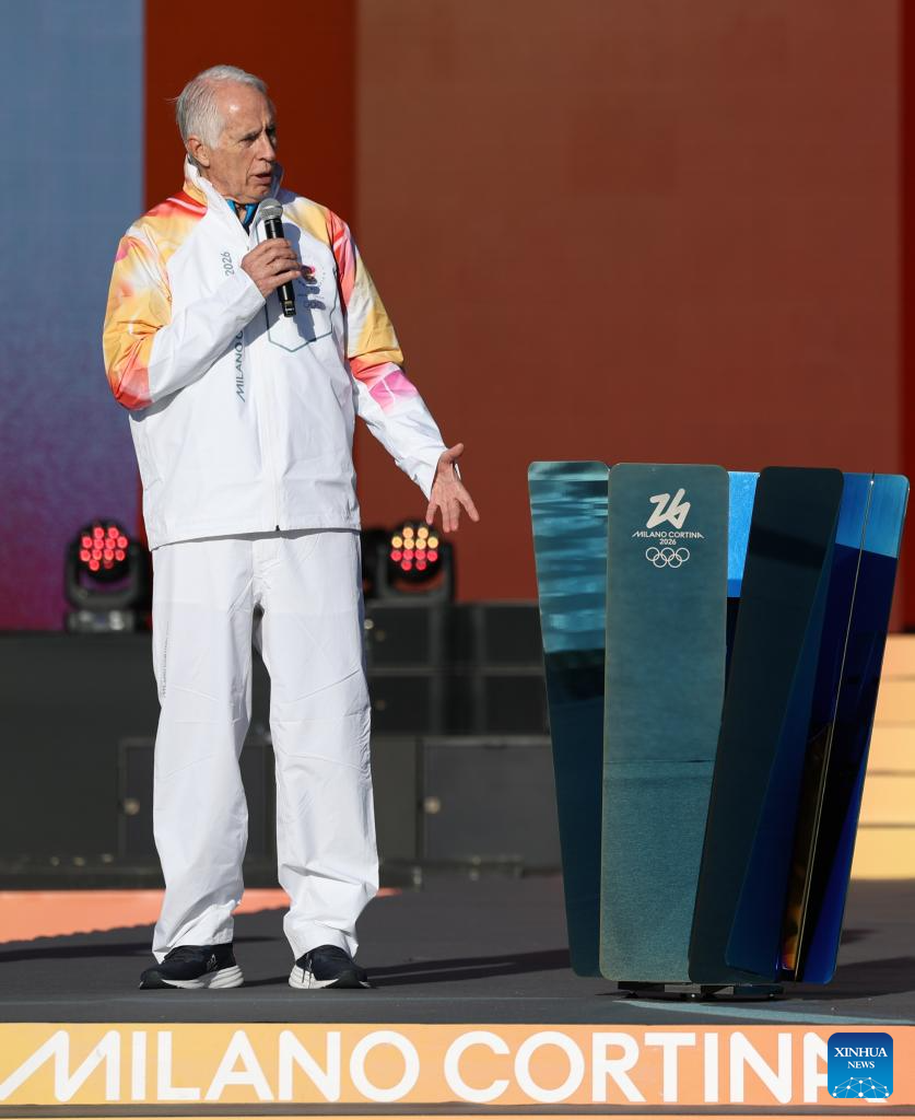 President of the organizing committee for the 2026 Winter Olympics Giovanni Malago speaks during the ceremony marking the official start of the torch relay for 2026 Milan-Cortina Winter Olympics in Rome, Italy, Dec. 6, 2025. (Xinhua/Li Jing)